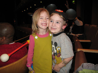 Aren't they cute? The day before Valentine's Day, she and her buddy went to see Playhouse Disney Live, then had dinner, and a carriage ride (and everyone says "awwwww"). That wicked cute little green jumper she's wearing is from Brighton Early. I made her a pretty Valentine heart pin for the occasion. It's pinned down near the bottom of her dress.
